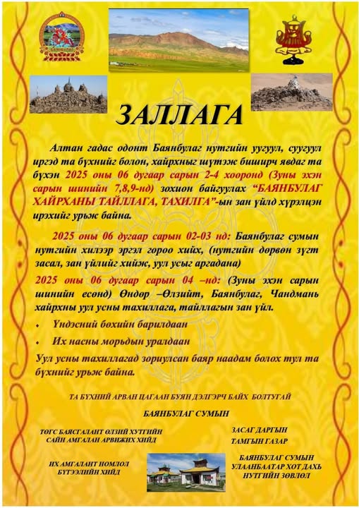 ӨНДӨР ӨЛЗИЙТ, БАЯНБУЛАГ ХАЙРХАНЫ ТАХИЛГА БОЛНО