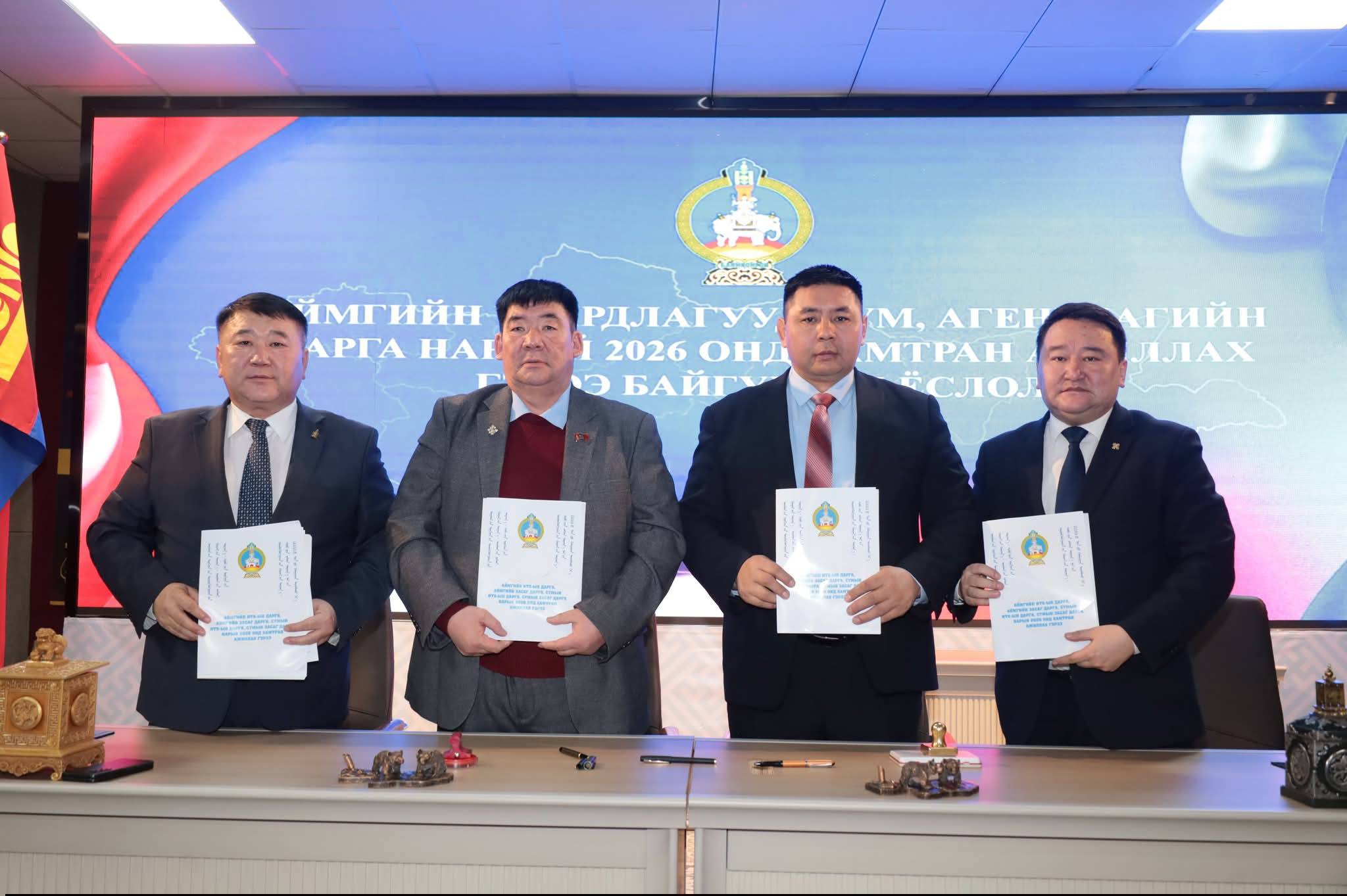 Сумын Засаг дарга Д.Батболд 2026 оны 02 дугаар сарын 02-ны өдөр Баянхонгор аймгийн Засаг дарга Э.Энхбаттай, мөн Хүүхэд, гэр бүлийн хөгжил хамгааллын газар, Цагдаагийн газар, Боловсролын газартай 2026 онд хамтран ажиллах үр дүнгийн гэрээг тус тус байгууллаа.