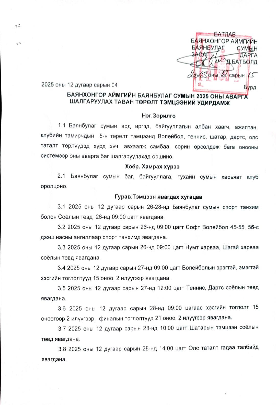 2025 ОНЫ АВАРГА ШАЛГАРУУЛАХ ТАВАН ТӨРӨЛТ ТЭМЦЭЭНИЙ УДИРДАМЖ